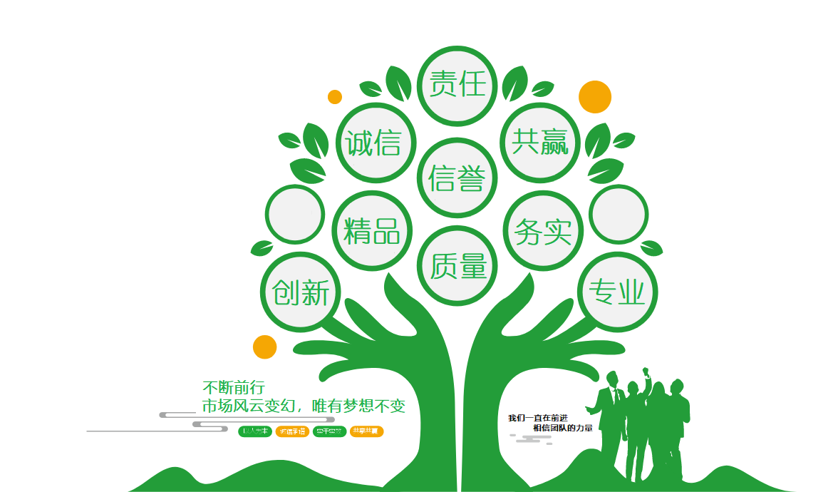 企業(yè)精神指企業(yè)員工所具有的共同內(nèi)心態(tài)度、思想境界和理想追求。它表達(dá)著企業(yè)的精神風(fēng)貌和企業(yè)的風(fēng)氣。企業(yè)精神是企業(yè)文化的一項(xiàng)重要而復(fù)雜的內(nèi)容,是企業(yè)全部的精神現(xiàn)象和精神活力。企業(yè)精神是公司全體員工彼此共鳴的內(nèi)心態(tài)度,意志狀況和思想境界。是企業(yè)健康向上的內(nèi)在氣質(zhì)的外在表現(xiàn),是企業(yè)發(fā)展、員工成長(zhǎng)的精神動(dòng)力和支柱。 嚴(yán)謹(jǐn)?shù)墓ぷ鲬B(tài)度才能打造出行業(yè)精品,果斷地做出正確的選擇才能保證企業(yè)良好的發(fā)展趨勢(shì),堅(jiān)持不懈地共同努力才能創(chuàng)造企業(yè)光輝燦爛的明天。秉持這一信條,企業(yè)才能擁有強(qiáng)大的凝聚力,帶領(lǐng)全體員工向著正確的方向前行。