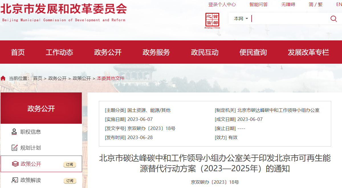 北京市可再生能源替代行動(dòng)方案 (2023—2025 年)