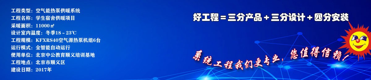 北京中公教育順義培訓基地11000㎡建筑地板采暖,設計室內(nèi)溫度冬季在18~23℃,冬季最低溫度不低于18℃,配置KFXRS40空氣源熱泵采暖機組6臺,冬季運行效果良好、節(jié)能環(huán)保、省心省力!